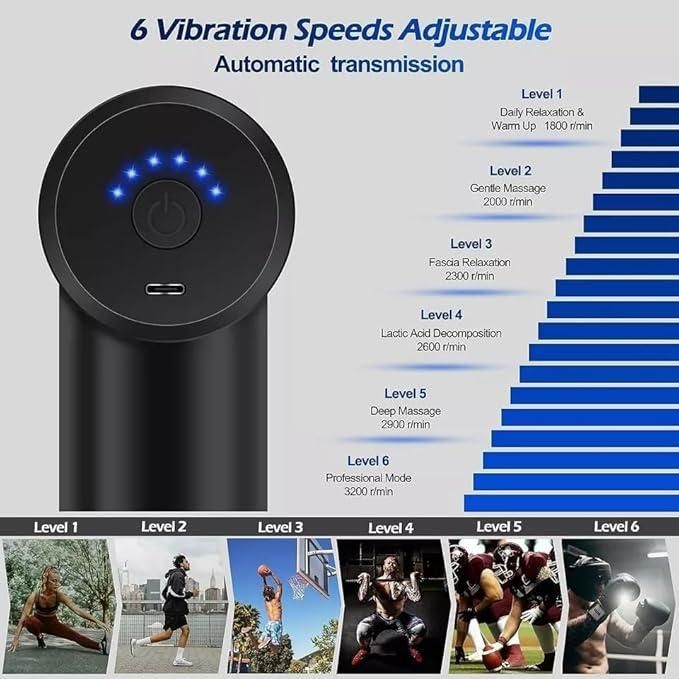 Deep tissue percussion gun massager designed to target sore muscles with high speed vibrations for pain relief and muscle relaxation